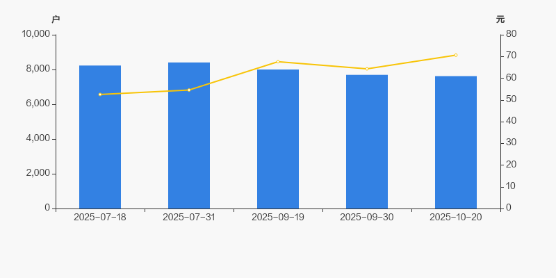 截至2025年10月20日,公司最新总股本为8387.17万股,且均为流通股。户均持有流通股数量由上期的1.09万股上升至1.1万股,户均流通市值77.72万元。