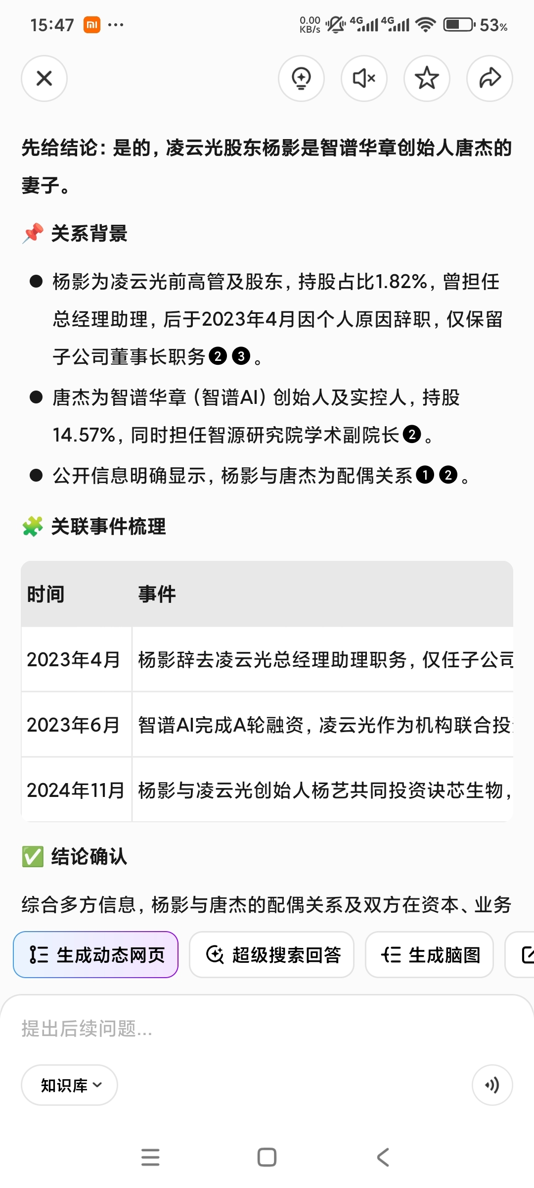 公开信息显示公司股东杨影是智谱华章创始人的配偶,两家公司关系不一般,智谱上市对凌