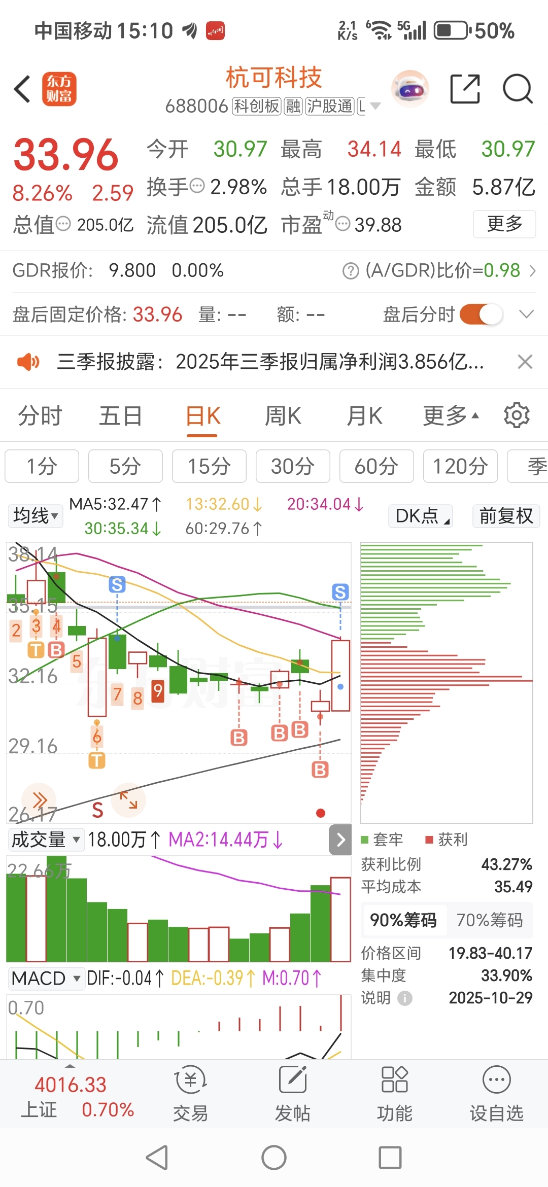 $凌云光(SH688400)$ 今晚出报告,最近一直不放量,有可能主力会趁机下杀一下的,大家做好心理准备,只要业绩还不错,明天下杀就放心加仓,他有优质题材,迟早会起来的。杭可科技前晚出业绩,环比下降了点,最近也是缩量,昨天开盘杀到-6.4,我看着主力再杀恐慌盘,猛加仓,今天果然拉了大阳线,今天出小点,继续格局,凌云光这种有核心题材的,大跌也不怕,前面那个跌停,不也就2天就补回来了。