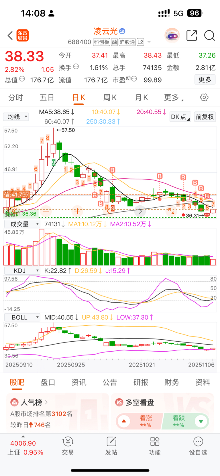 $凌云光(SH688400)$ 菜鸡连5日线都摸不到,买入后连个做T机会都不给