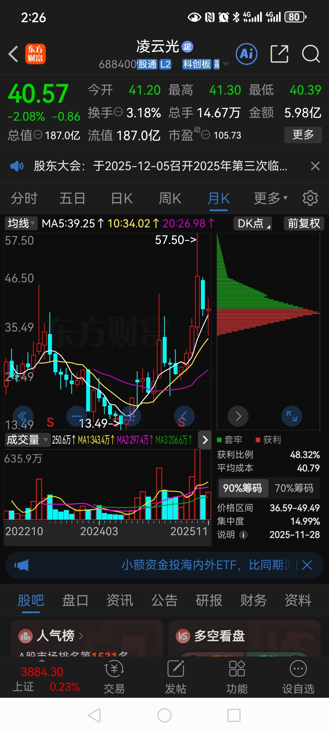 $凌云光(SH688400)$ 收盘站稳40.51月线收红,技术形态得到修复了,下月可期