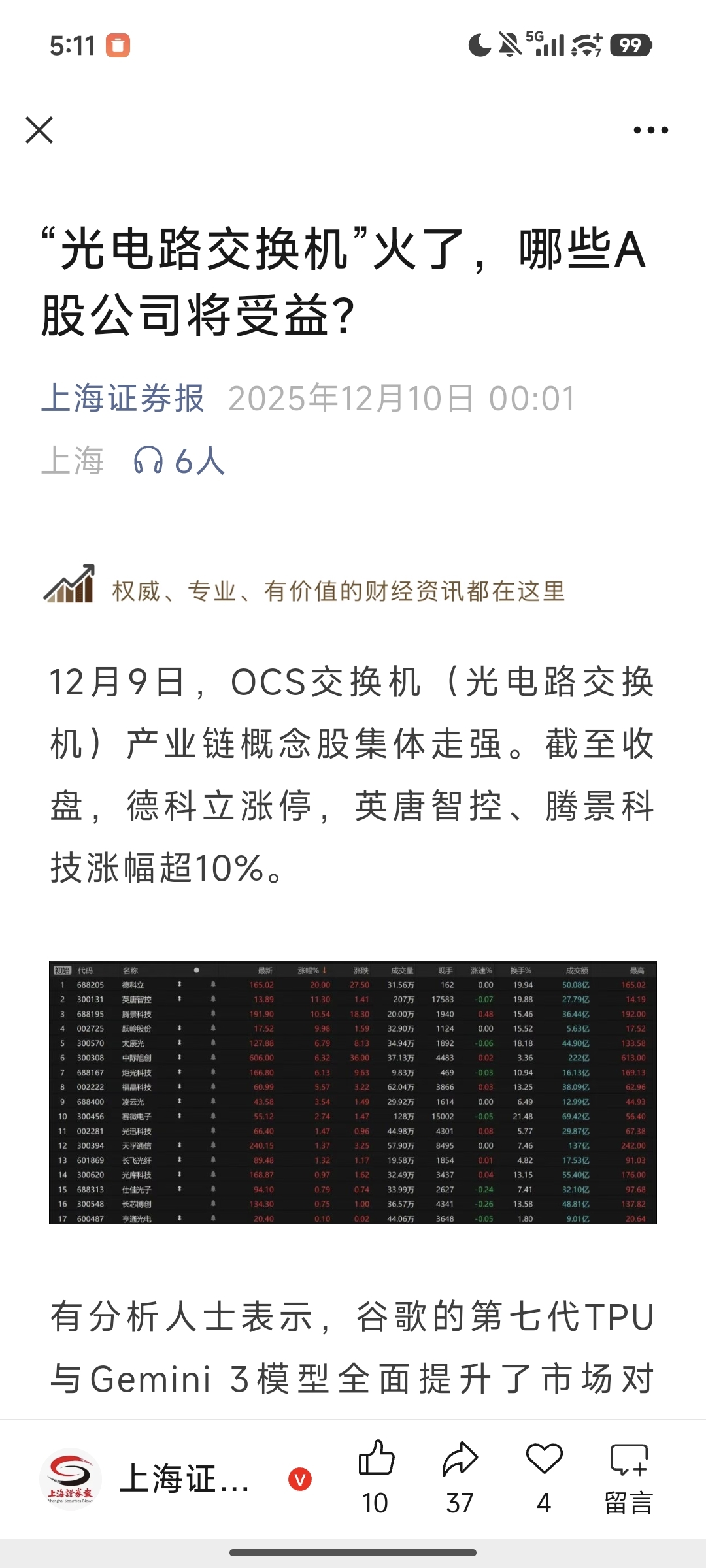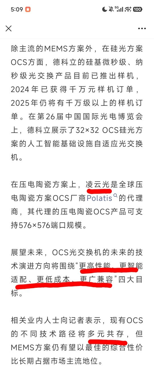 上海证券报官媒文章报道:OCS存在市场增量空间,多种技术路线将共存,感兴趣可以去公众号搜索看看。