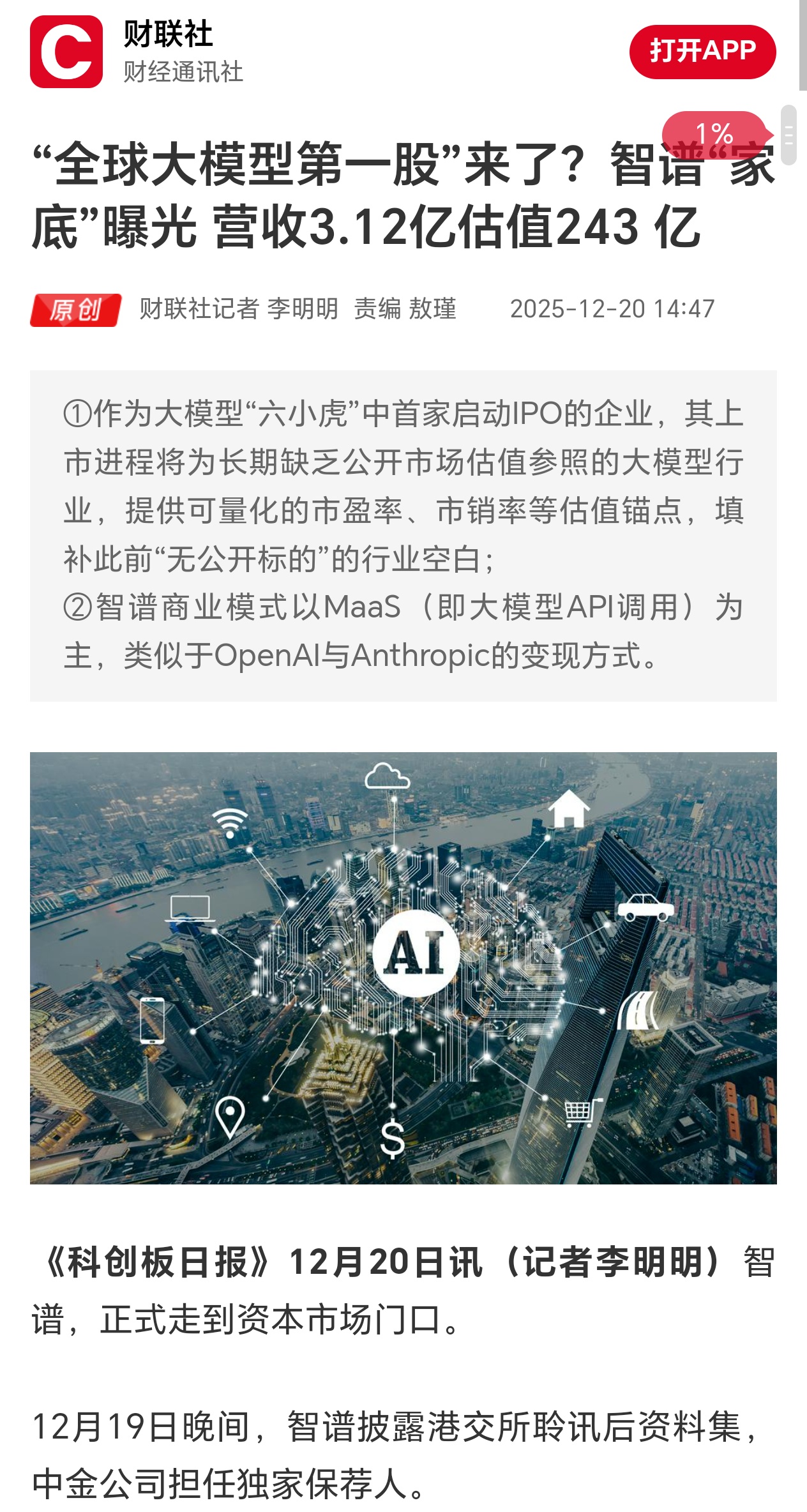凌云光属于A股中直接参股智谱AI的上市公司之一,持股比例稳居前列,持股比例达到1.02%,虽然凌云光的持股比例不算特别高,但双方的业务协同非常强。它们不仅是投资关系,还是深度的合作伙伴。