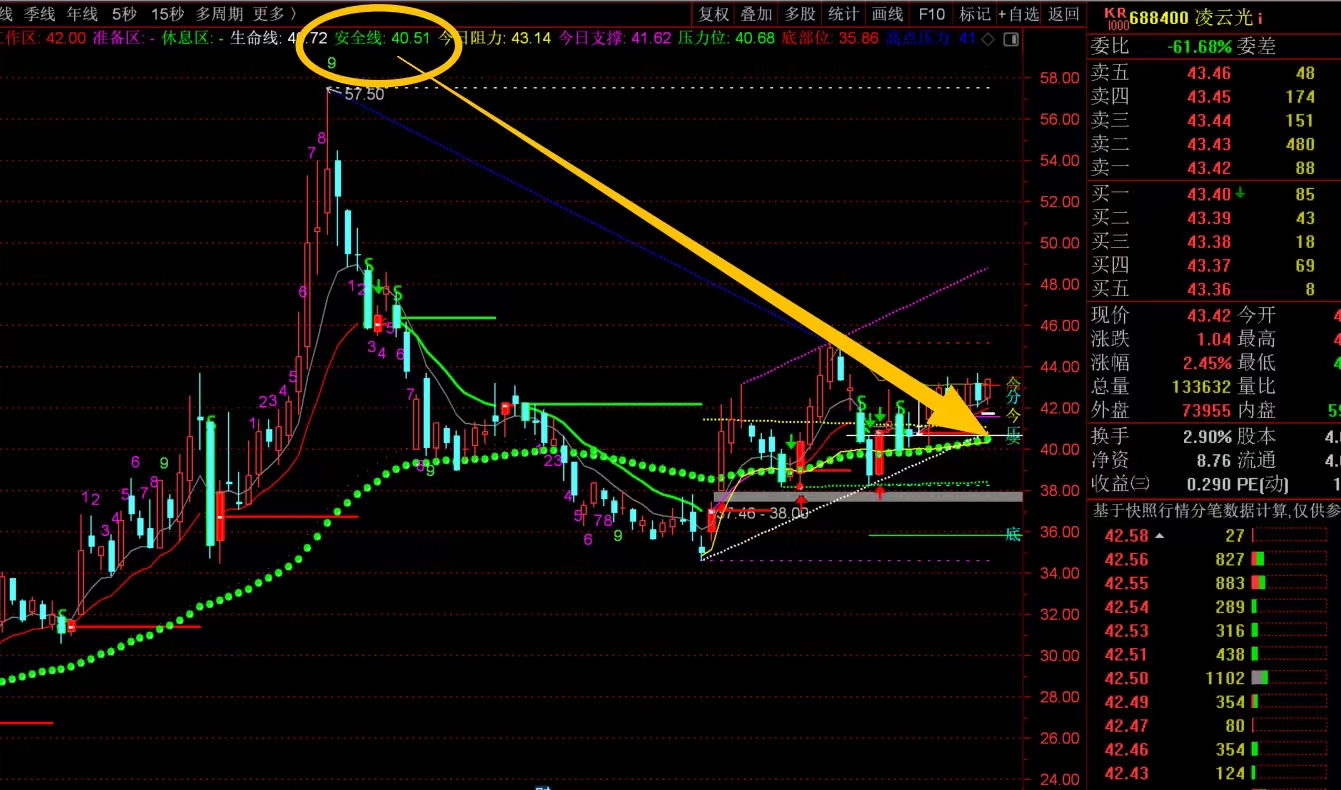 $凌云光(SH688400)$ 前期大涨后,经过高位回落震荡,近期逐步拉升起来,重新站稳了安全线40.51位置,接下来重点看能否继续震荡拉高,目前整体趋势还不算强,能放量站稳45.2就可以重点观察,防守就还是看脚底安全线得失来控制仓位吧。#复盘记录# #炒股日记#