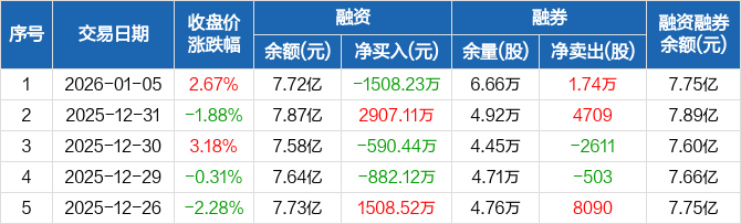 凌云光:融资净偿还1508.23万元,融资余额7.72亿元(01-05)