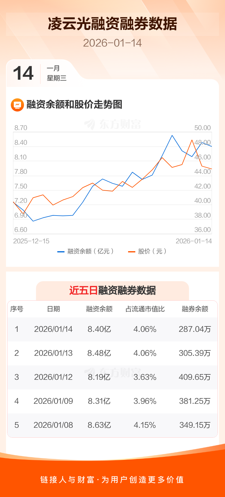 交易所最新数据显示,凌云光于2026年1月14日获融资买入1.63亿元,融资偿还1.70亿元,当日融资净偿还766.72万元。目前,该股融资余额8.40亿,占流通市值比例为4.06%。