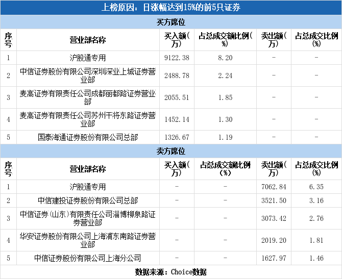 沪股通现身龙虎榜,路维光电涨停(10-13)
