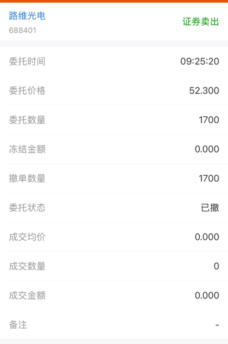 $路维光电(SH688401)$ 请问下这算不算耍赖,开盘52.32,最高价到了52.34,我9点25分就挂52.30卖出,结果一股没让我卖出去,这么明目张胆的收割了吗?