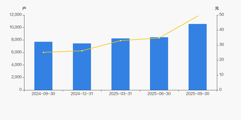 自2024年12月31日以来,公司股东户数连续3期上涨,截至目前增幅为41.75%。2024年12月31日至2025年9月30日区间股价上涨88.29%。