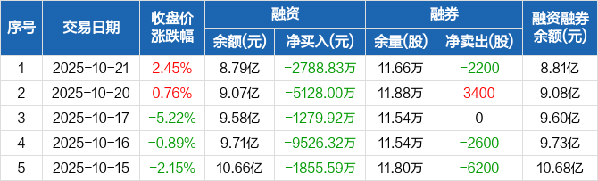 汇成股份:连续5日融资净偿还累计2.06亿元(10-21)