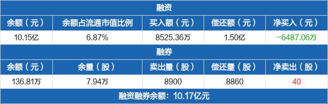 汇成股份:融资净偿还6487.06万元,融资余额10.15亿元(12-23)