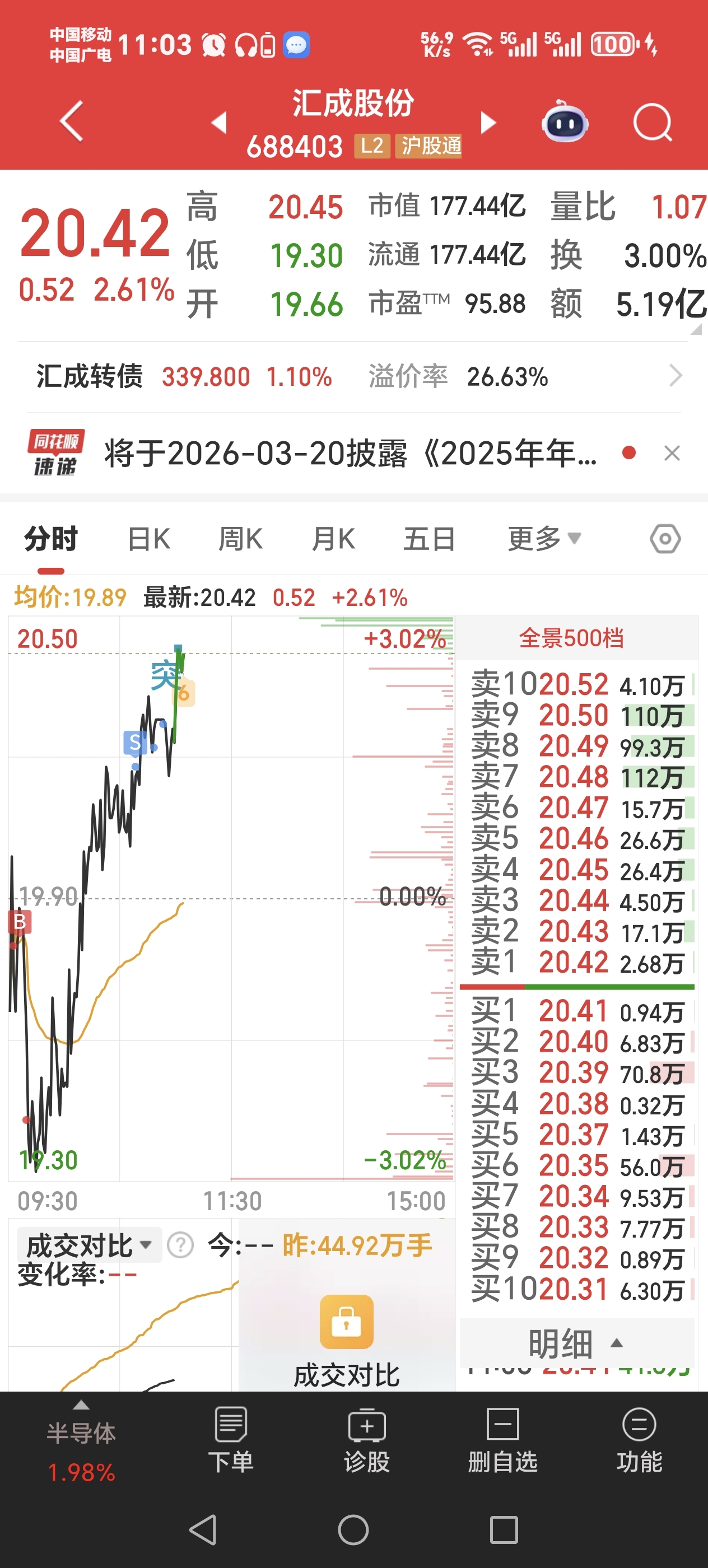 $汇成股份(SH688403)$ 兄弟们,两个多点的t爽不爽,继续看好天银机电。道氏技术$道氏技术(SZ300409)$ $天银机电(SZ300342)$