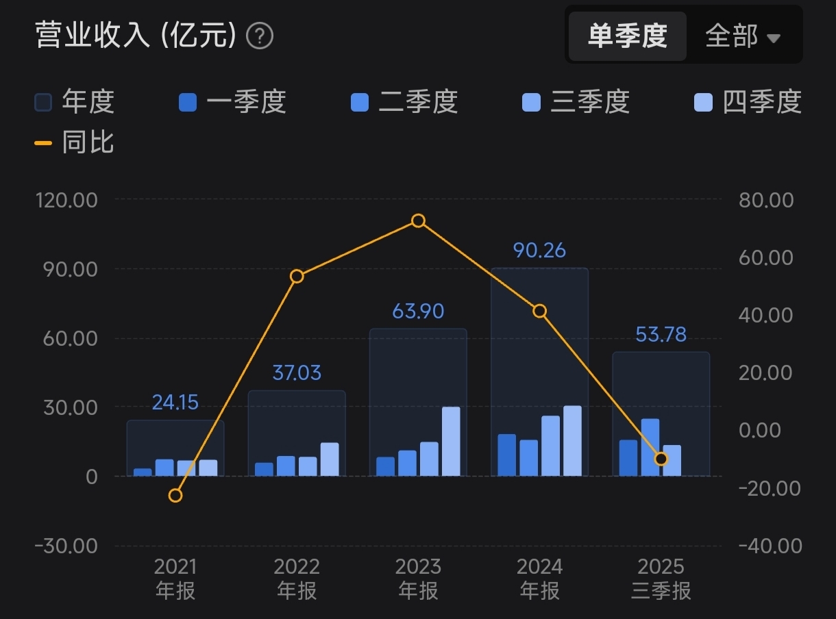 在手订单71.98亿,我们假设订单的交付周期为3个季度,则平摊到未来3个季度的营业收入中,再叠加给与每季度订单量平均5%的增长,则2025年四季度的应收约25.19亿,那么2025年全年应收可达到78.97亿,略低于2024年。如果交付周期为2个季度,则2025全年应收为91.60亿,则与2024年基本持平。