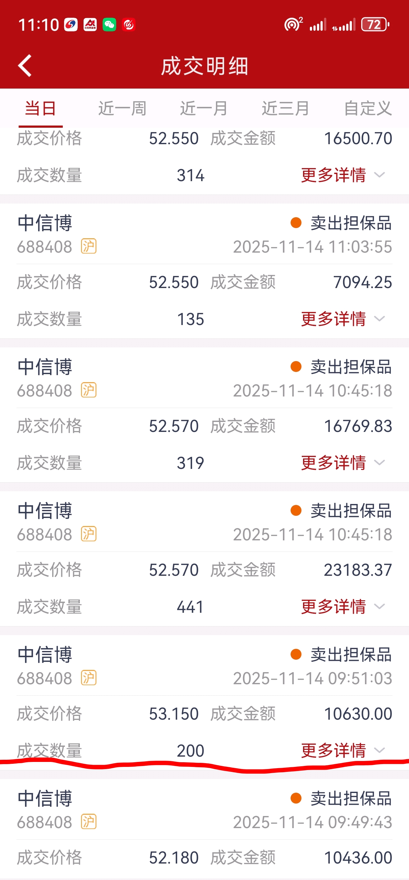$中信博(SH688408)$ 让大家看看,一定要分批卖,今天我卖到了53.15