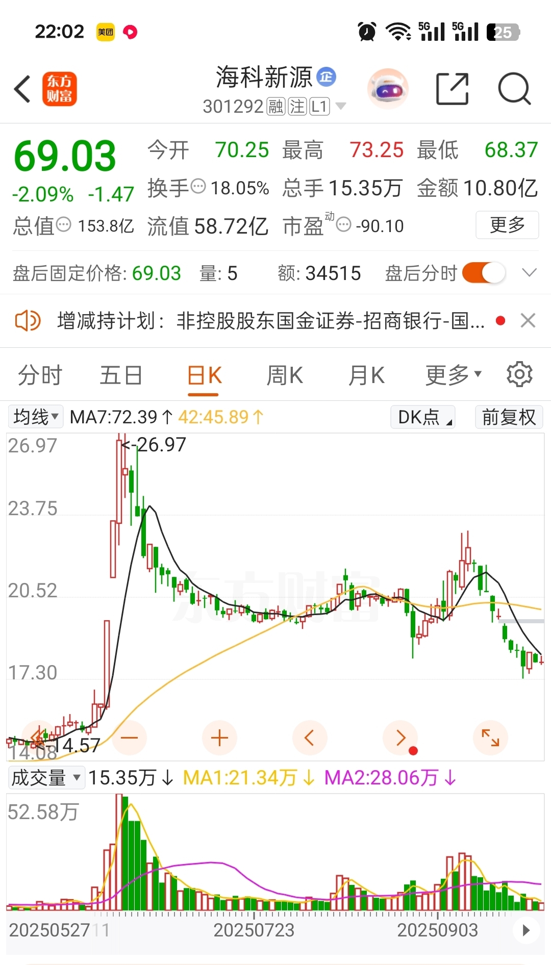中信博此时的情况,和$海科新源(SZ301292)$ 9月23日时完全一样,拉高后天天下跌,成交量极度萎缩,主力刻意打压,吓散户交出筹码。