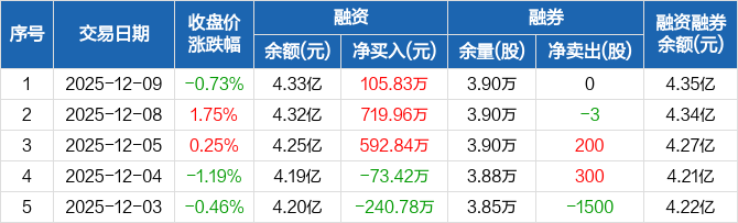 中信博:连续3日融资净买入累计1418.63万元(12-09)
