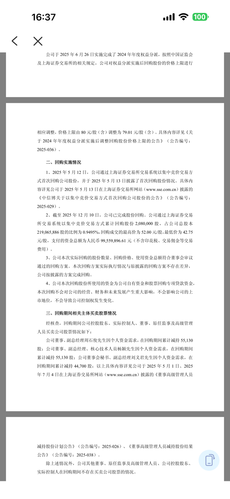 已完成股份回购,公司平均回购成本为47.87元。特大利好,该股长期压盘的阻碍已经