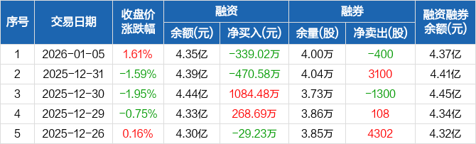 中信博:融资净偿还339.02万元,融资余额4.35亿元(01-05)