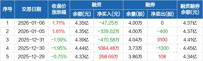 中信博:连续3日融资净偿还累计856.85万元(01-06)