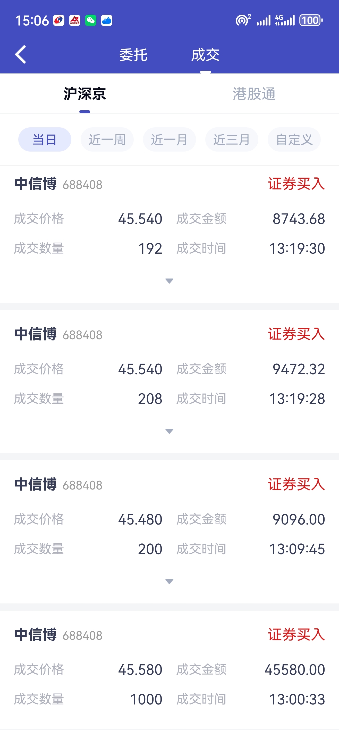 $中信博(SH688408)$ 兄弟们,今天又抄中信博底了,让主力好好看看它砸下去,是怎么被我们捡便宜的,嘿嘿,非常喜欢和这样的蠢X打交道,好久没遇见这样又蠢又X的主力了,但没买到45.45,肯定它自己买回去了