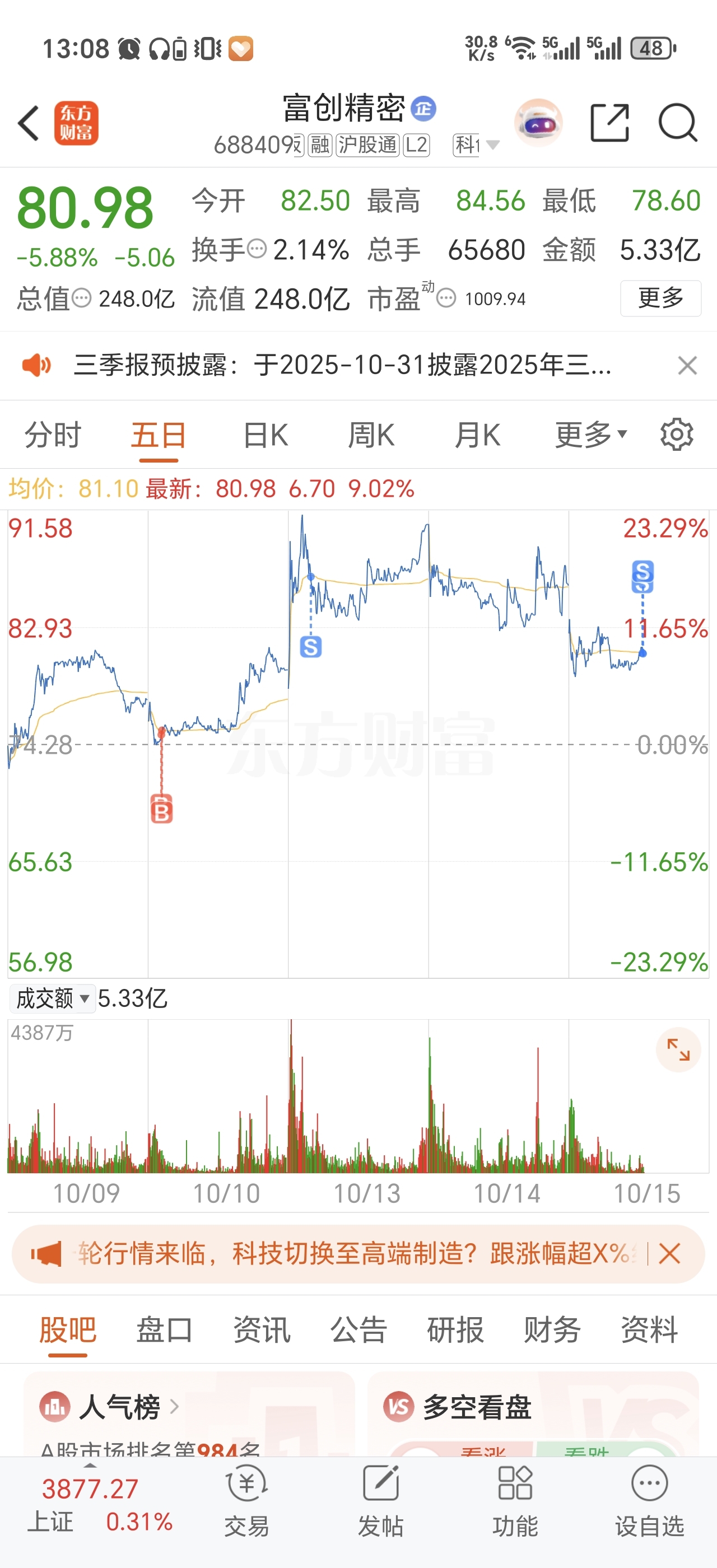 $富创精密(SH688409)$ 短期不看了,卖飞就卖飞吧