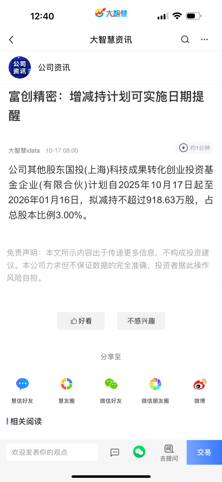 为什么大智慧软件涉及这个股票的信息,东方财富怎么没有公告,大智慧软件涉及这个股票前天出的信息,股东减持6个多亿,占总股本的3%,从10.17号开始半年内减持完。
