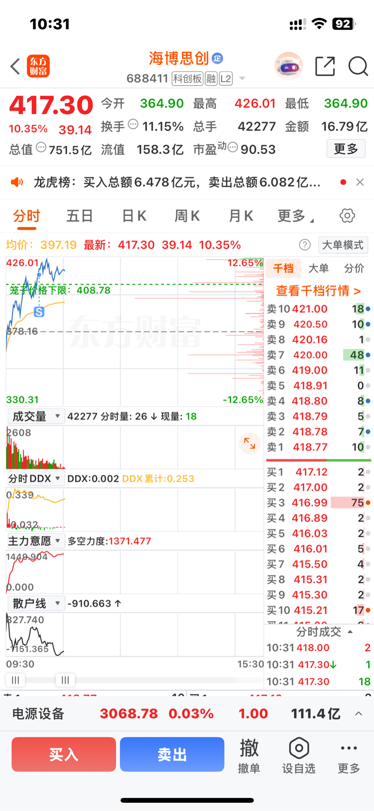 $海博思创(SH688411)$ 跑了!昨天今天出!22个点已经满意了!
