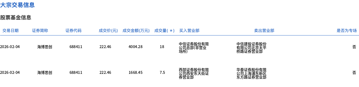 海博思创今日大宗交易折价成交25.5万股,成交额5672.73万元