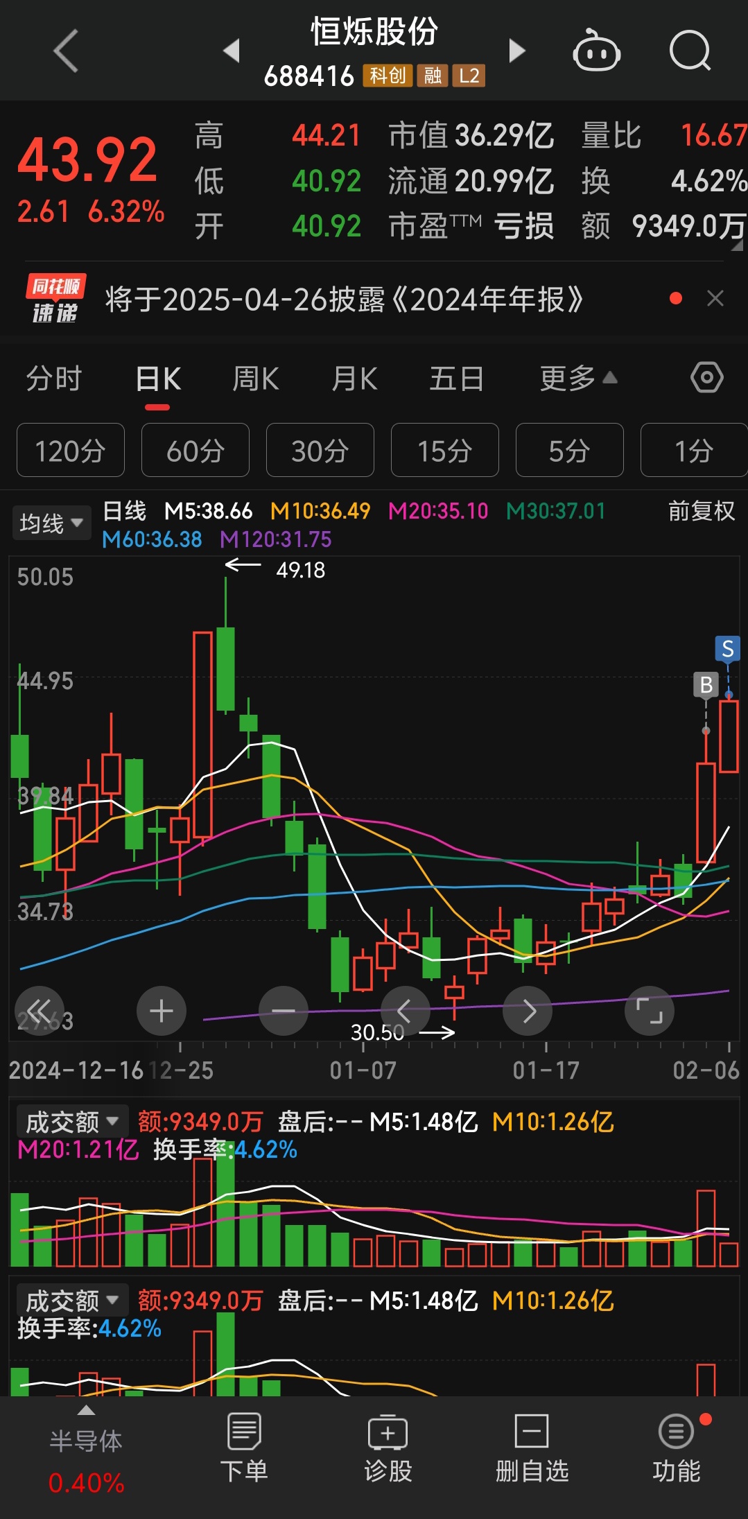 $恒烁股份(SH688416)$ 500手,感恩感谢主力,开年红