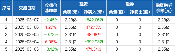 恒烁股份:融资净偿还842.06万元,融资余额2.28亿元(03-07)