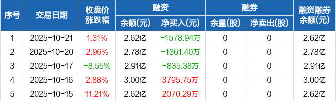 恒烁股份:连续3日融资净偿还累计3775.73万元(10-21)