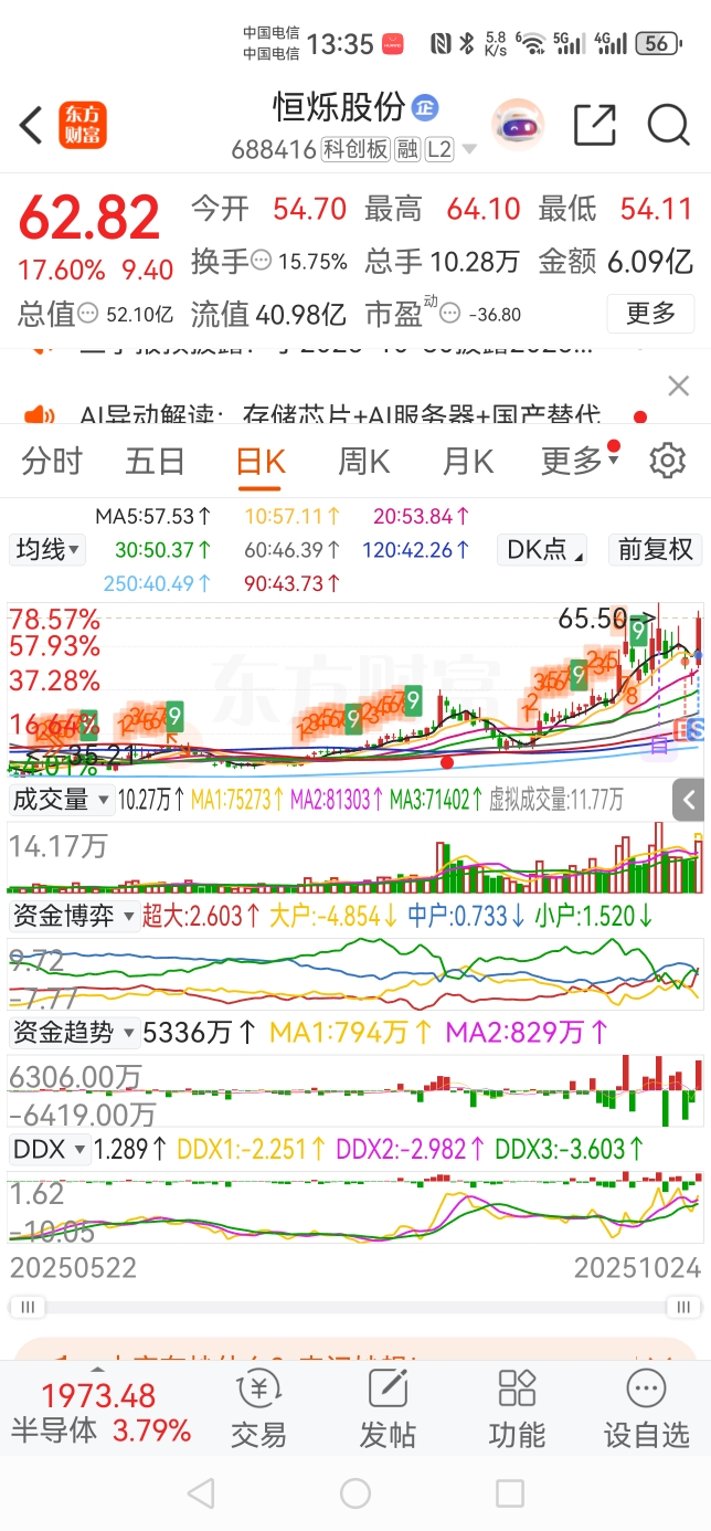 $恒烁股份(SH688416)$ 有本事上演天地板。
