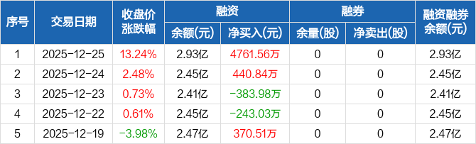 恒烁股份:融资净买入4761.56万元,融资余额2.93亿元(12-25)