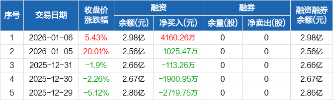 恒烁股份:融资净买入4160.26万元,融资余额2.98亿元(01-06)