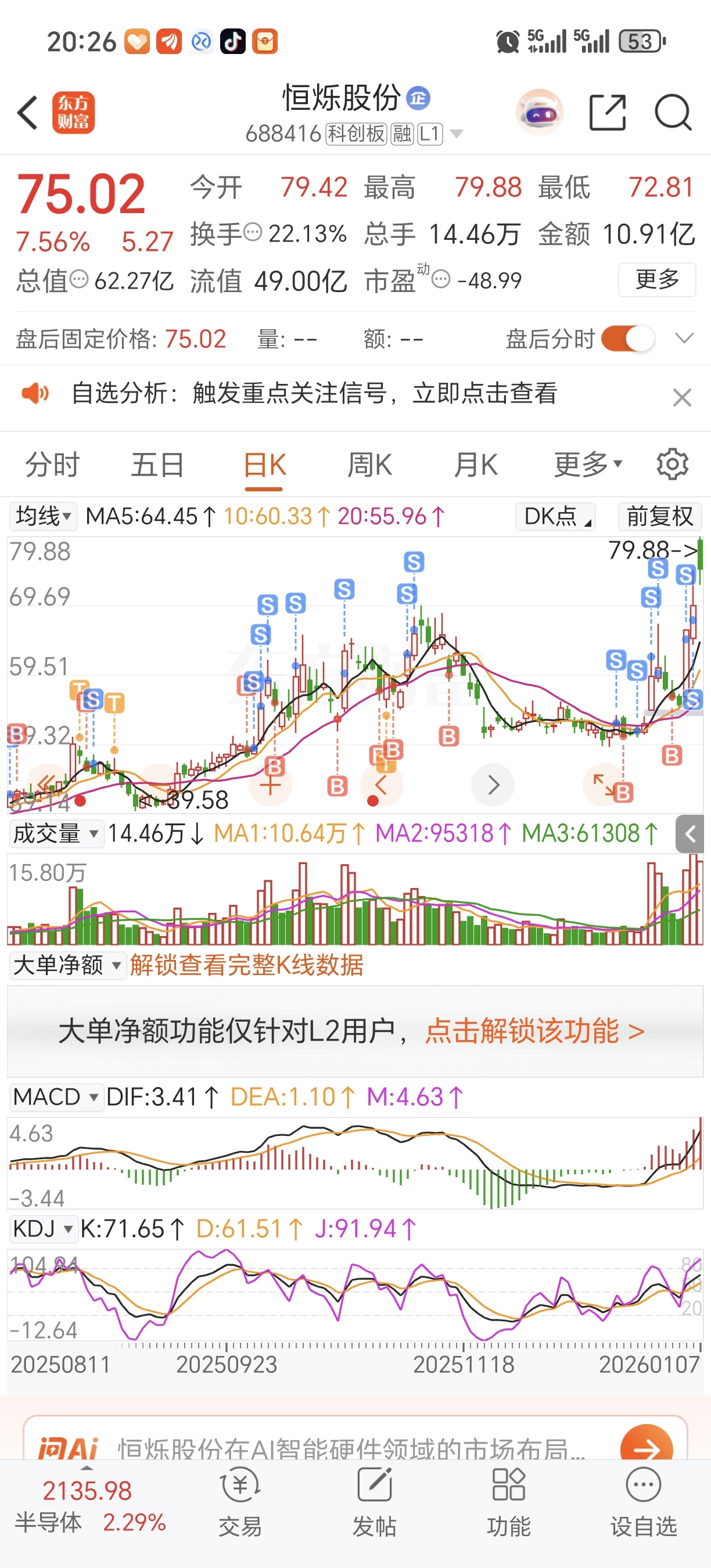 $恒烁股份(SH688416)$ 留个200股观察观察。