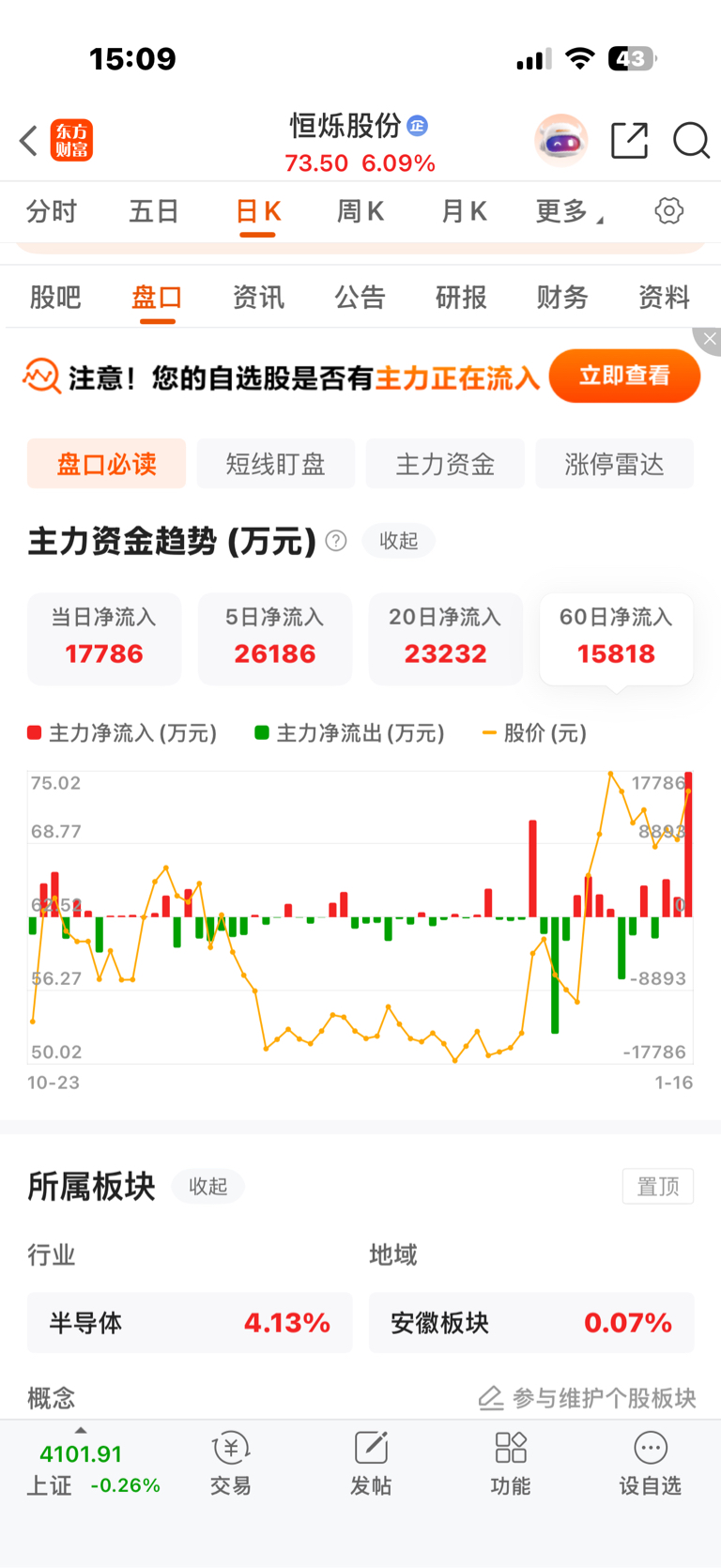 恒烁股份,小而美存储芯片股票。Nor Flash,国内头号玩家兆易创新,在逐步退出该市场,转而主攻利润更丰厚、市场更大的DRAM市场。兆易创新留下的20%市场份额,将逐步由恒烁和普冉二家接盘。伴随着芯片单价的提升、市场份额的增长,戴维森双击出现,净利润断层的逻辑,够不够臭屁的?拿住了!拉升在即。资金层面,当日、五日、二十日、六十日皆呈现流入,说明主力一直在布局。