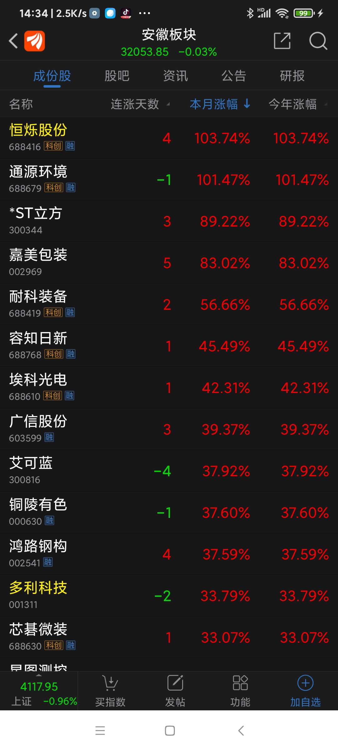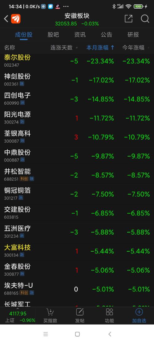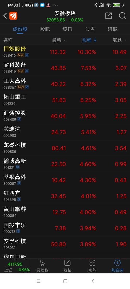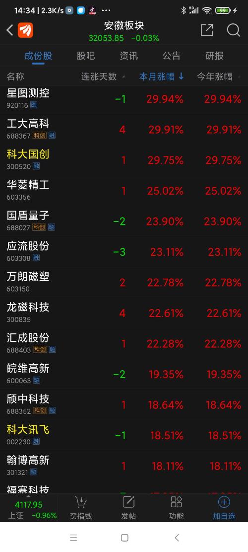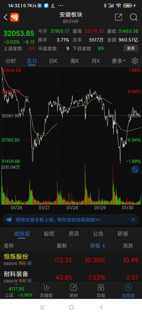 安徽板块26年元月涨幅9.67%,名列全国各省市区板块第一名,恒烁股份名列安徽板