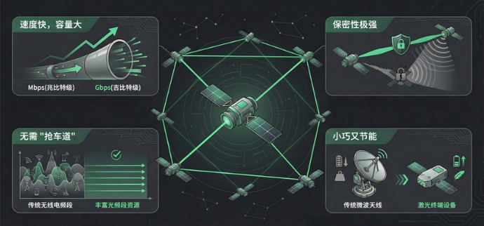 与传统微波通信相比,这种太空中的“光纤”具备四大核心优势: