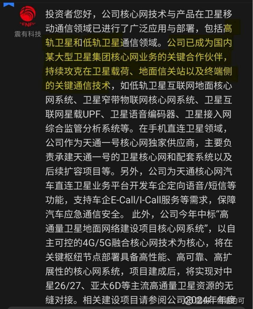 $震有科技(SH688418)$ 手机直连卫星、汽车直连卫星(无人驾驶),划重点