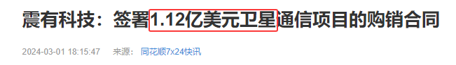 震有科技:签署1.12亿美元卫星通信项目的购销合同