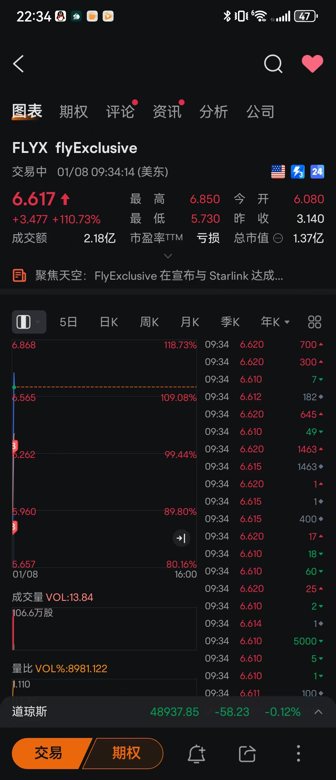 美股卫星应用公司flyExclusive今晚有可能3-5倍涨幅