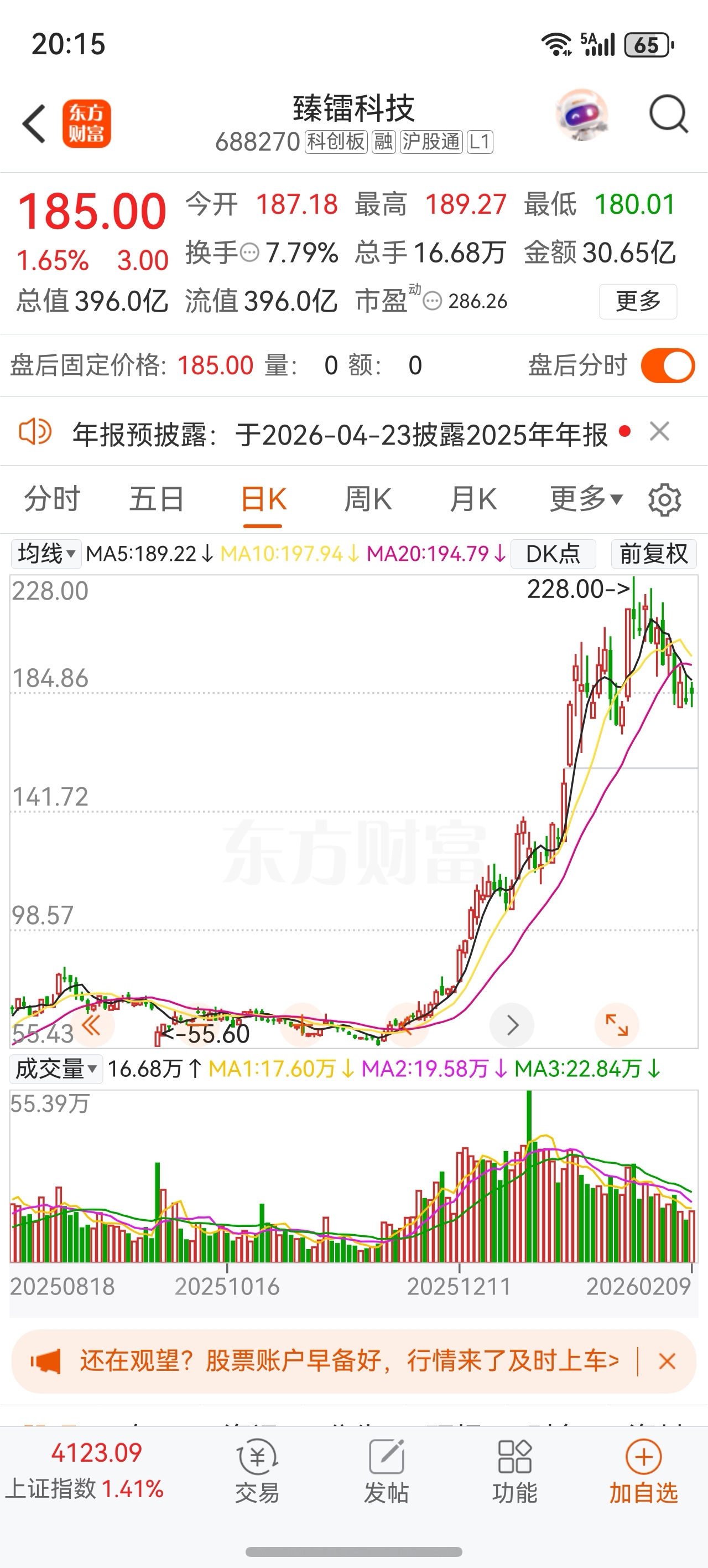 $震有科技(SH688418)$ 臻镭科技是因为被立案调查,比震有科技严重几百倍,而当天的低点55,就成为最低点,然后直接翻了4倍多。