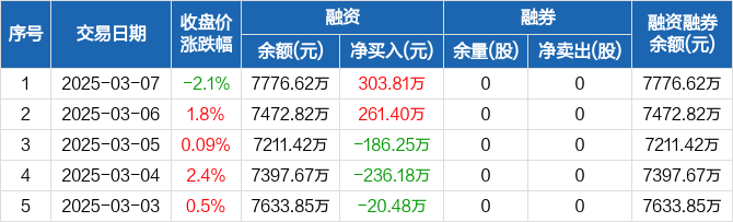 耐科装备:融资净买入303.81万元,融资余额7776.62万元(03-07)