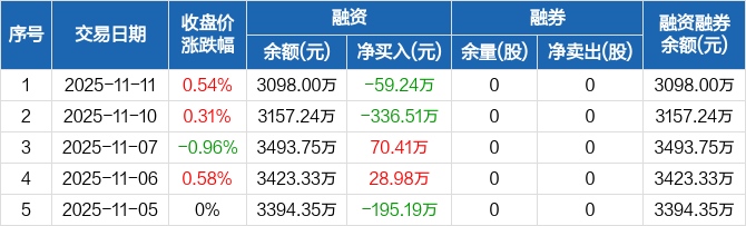 美腾科技:融资净偿还59.24万元,融资余额3098万元(11-11)