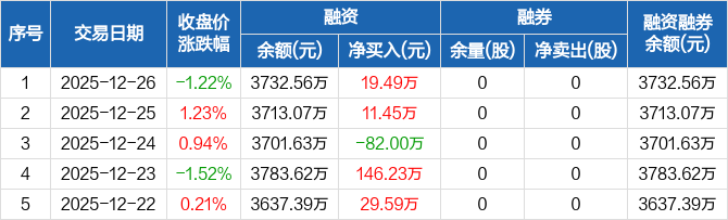 美腾科技:融资净买入19.49万元,融资余额3732.56万元(12-26)