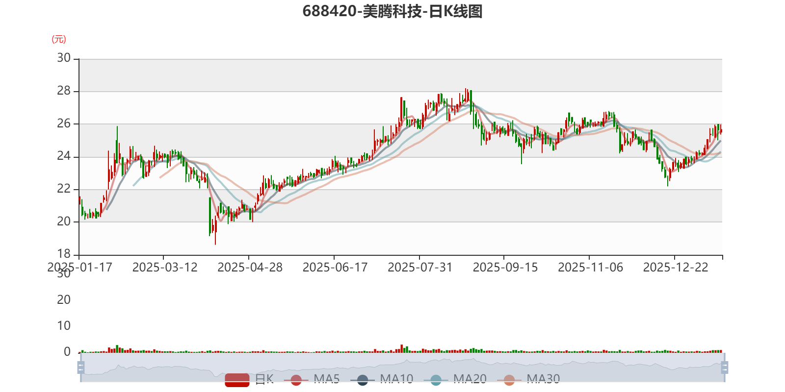 中证智能财讯美腾科技(688420)1月16日晚间披露2025年度业绩预告,预计2025年实现营业收入5.08亿元至6.21亿元,同比变动-7.02%至13.65%;归母净利润1214.68万元至1822.02万元,同比下降55.21%-70.14%;扣非净利润预计348.26万元-522.38万元,同比下降75.81%-83.87%。以1月16日收盘价计算,美腾科技目前市盈率(TTM)约为124.54倍-186.81倍,市净率(LF)约1.58倍,市销率(TTM)约4.02倍。