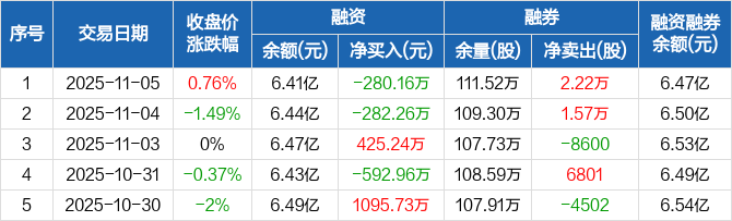 铁建重工:融资净偿还280.16万元,融资余额6.41亿元(11-05)