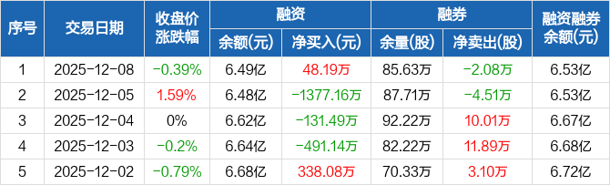 铁建重工:融资净买入48.19万元,融资余额6.49亿元(12-08)