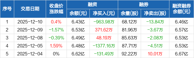 铁建重工:融资净偿还963.98万元,融资余额6.43亿元(12-10)