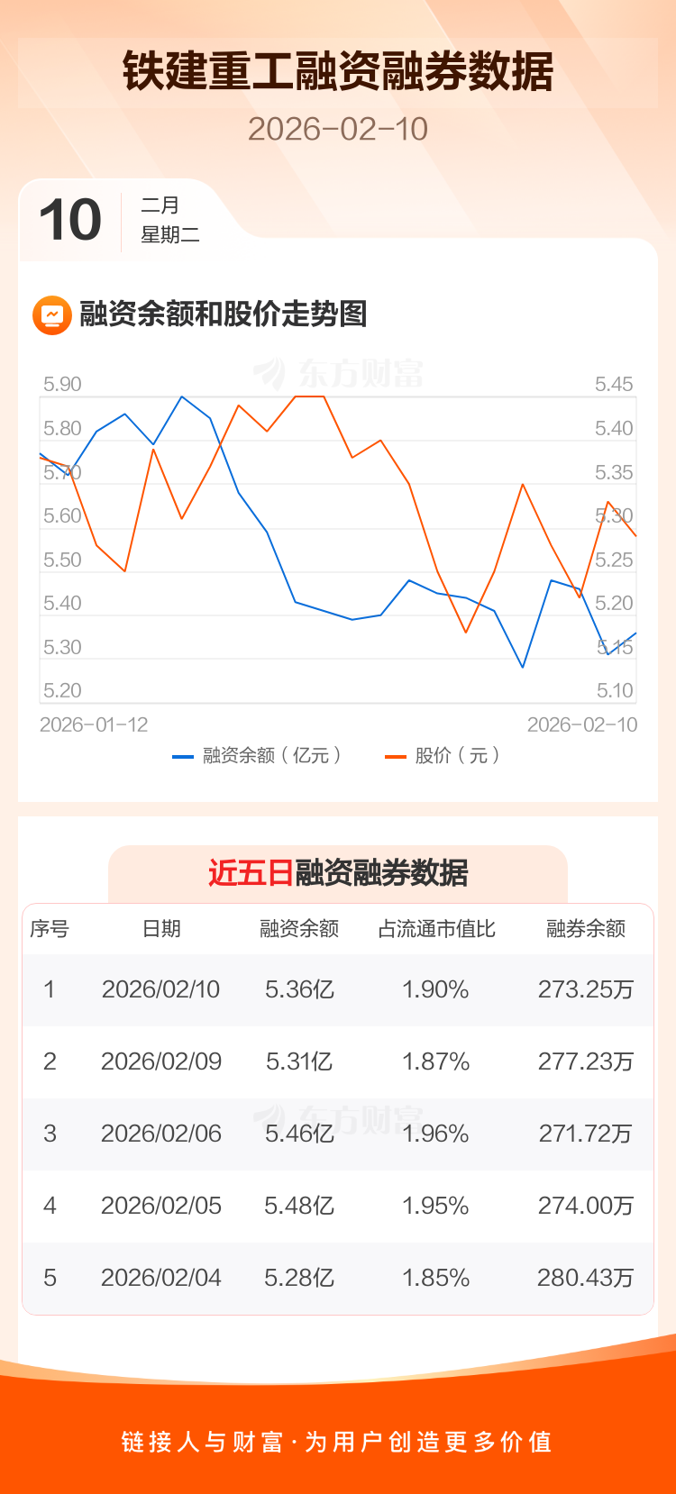 交易所最新数据显示,铁建重工于2026年2月10日获融资买入1529.07万元,融资偿还1005.15万元,当日融资净买入523.93万元。目前,该股融资余额5.36亿,占流通市值比例为1.90%。